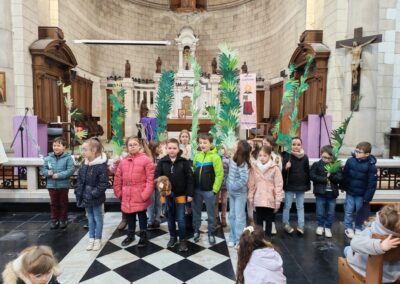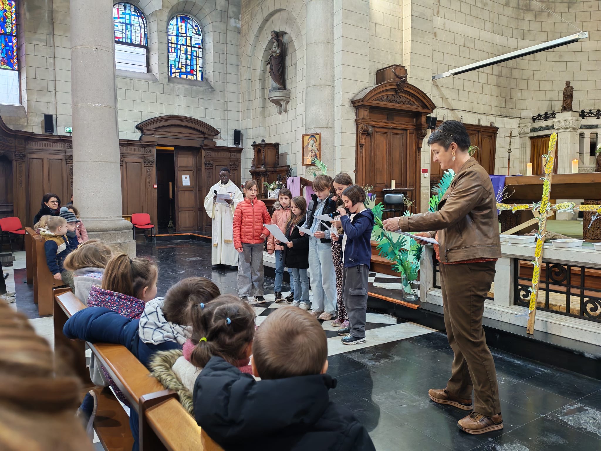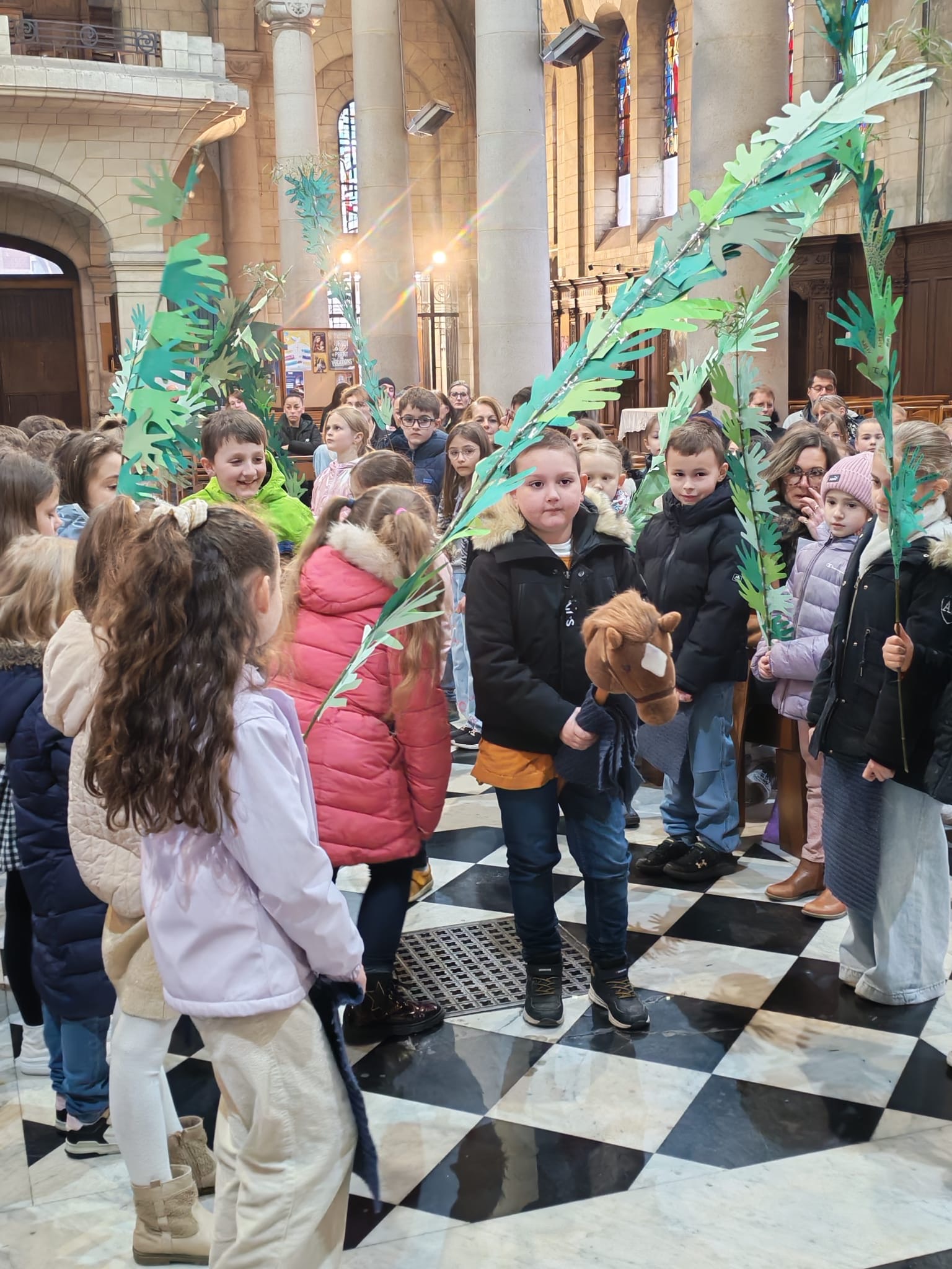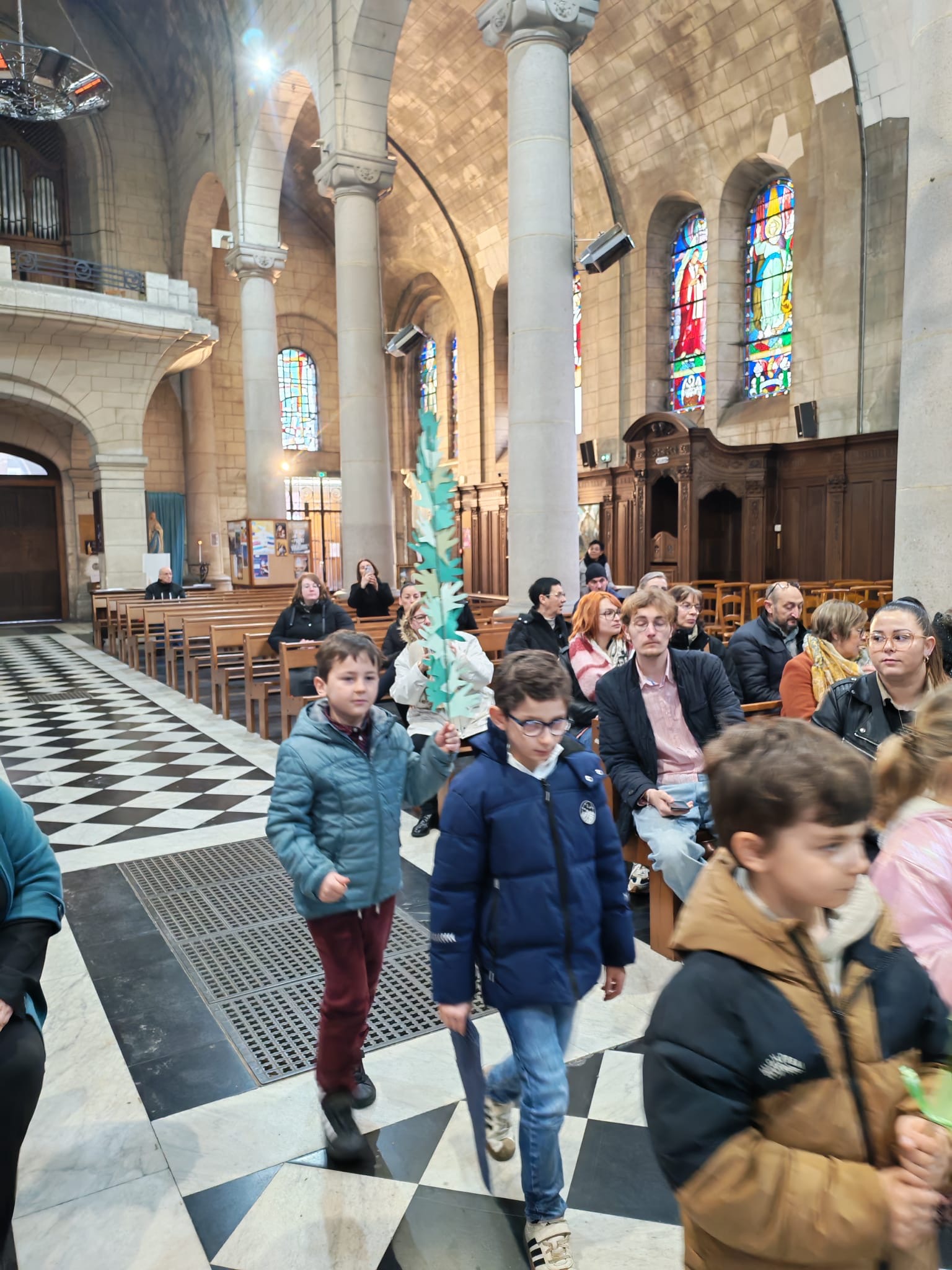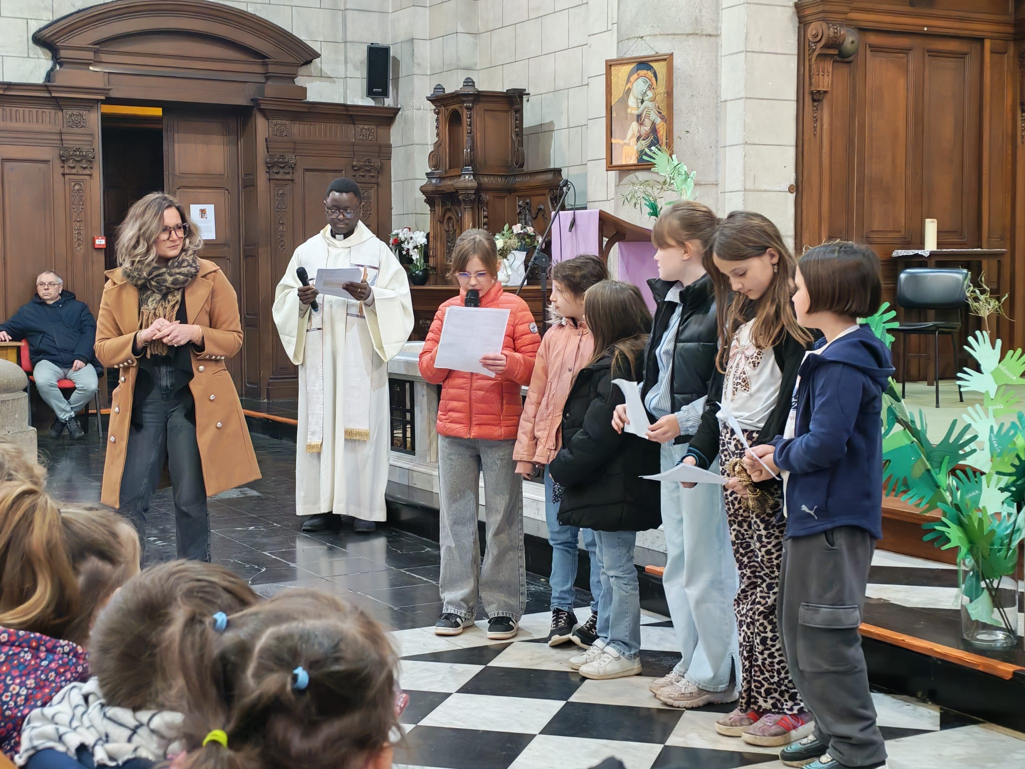 Pour préparer cet événement, les élèves ont participé à différentes activités riches de sens. Ainsi, chacun a confectionné de jolis rameaux décorés d’empreintes de mains, symbolisant l’entrée de Jésus à Jérusalem et l’accueil chaleureux qui lui fut réservé. Ces créations colorées ont apporté une touche vivante et personnelle à la célébration.