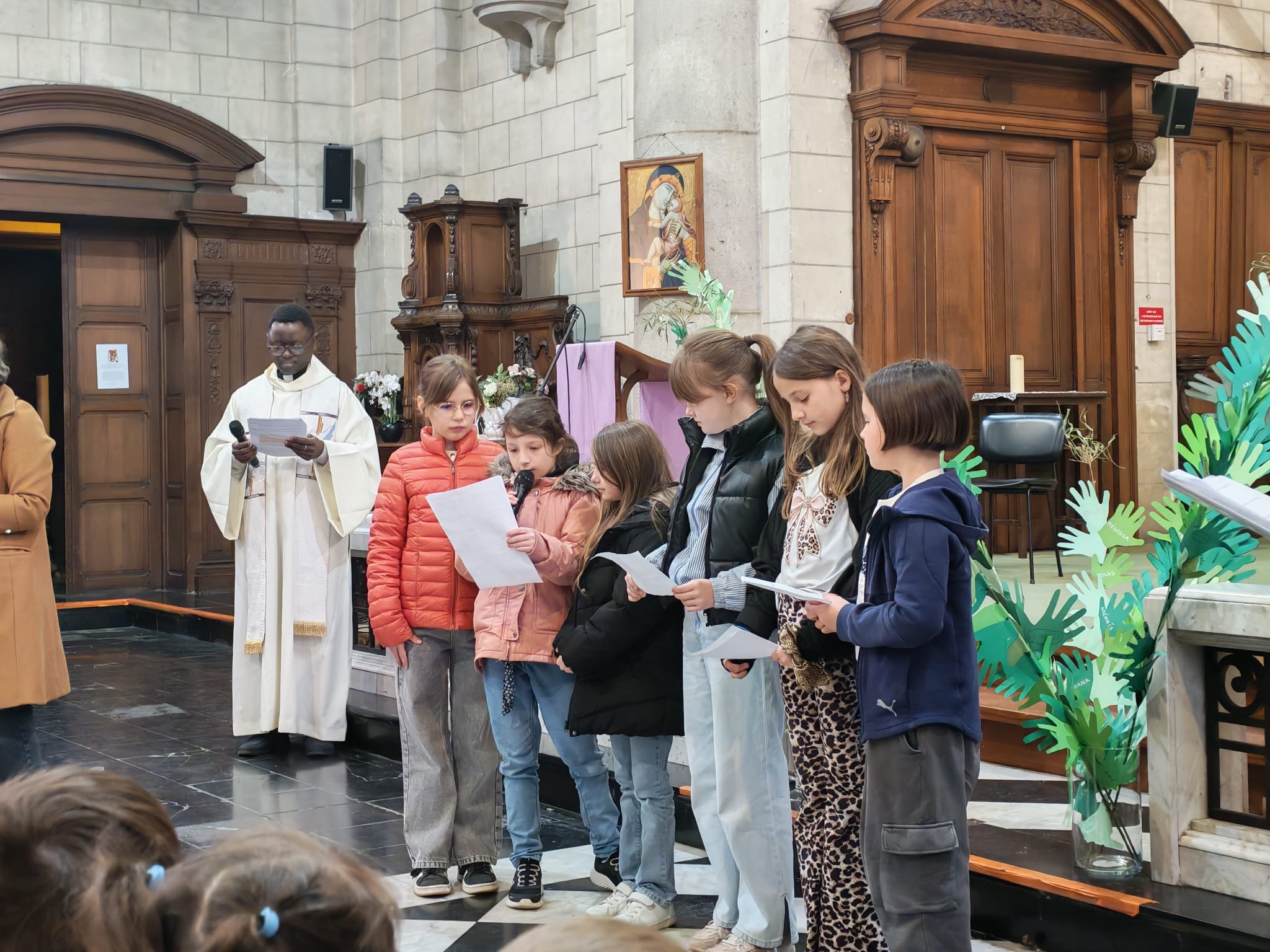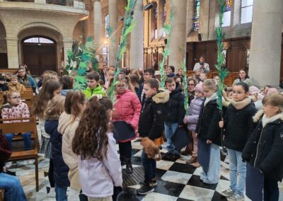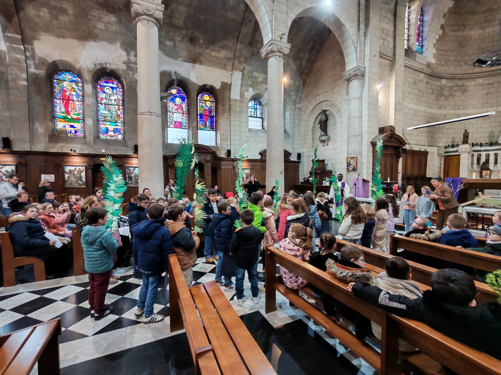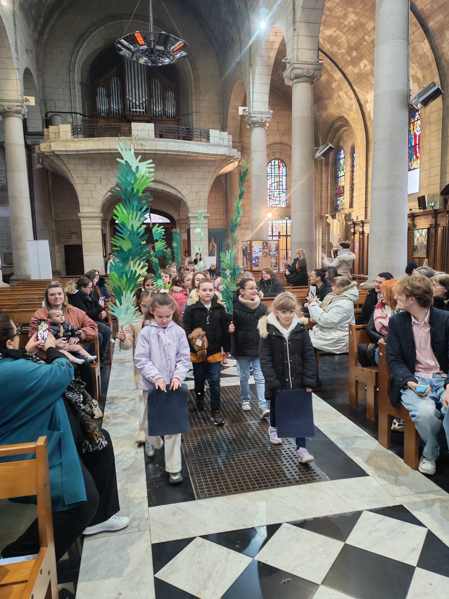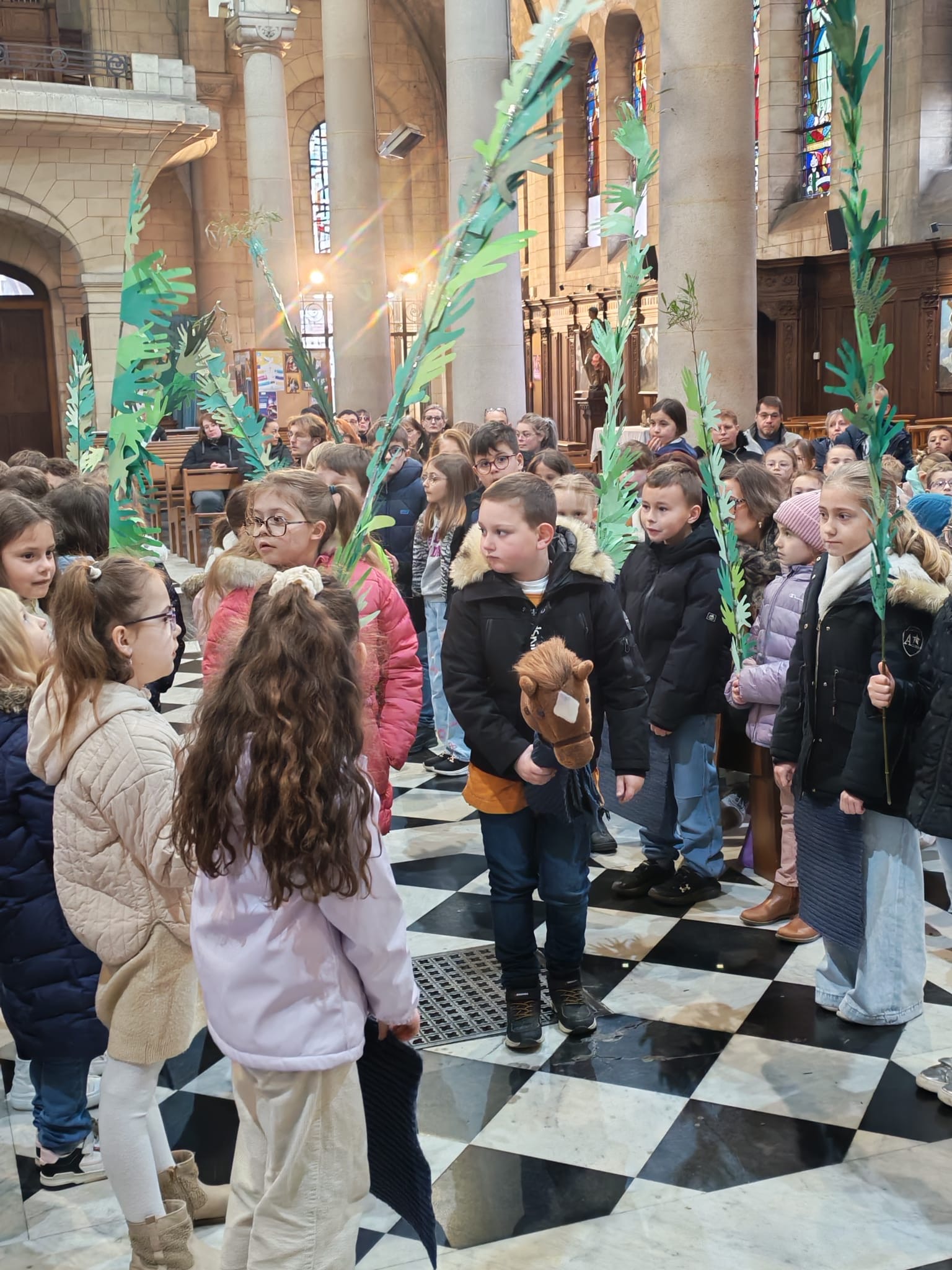 Pour préparer cet événement, les élèves ont participé à différentes activités riches de sens. Ainsi, chacun a confectionné de jolis rameaux décorés d’empreintes de mains, symbolisant l’entrée de Jésus à Jérusalem et l’accueil chaleureux qui lui fut réservé. Ces créations colorées ont apporté une touche vivante et personnelle à la célébration.