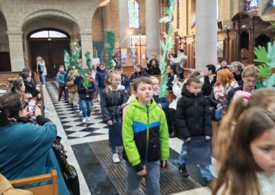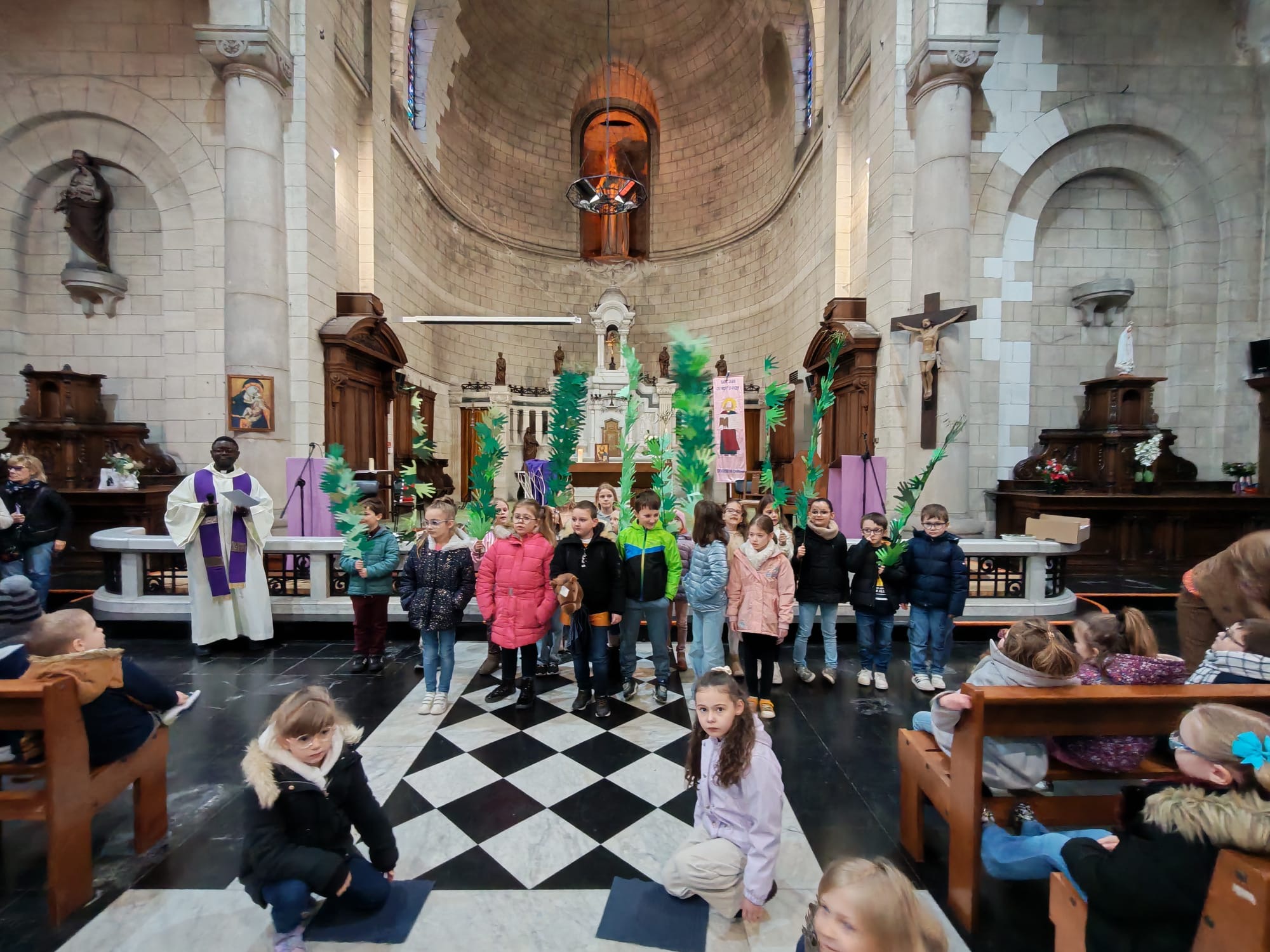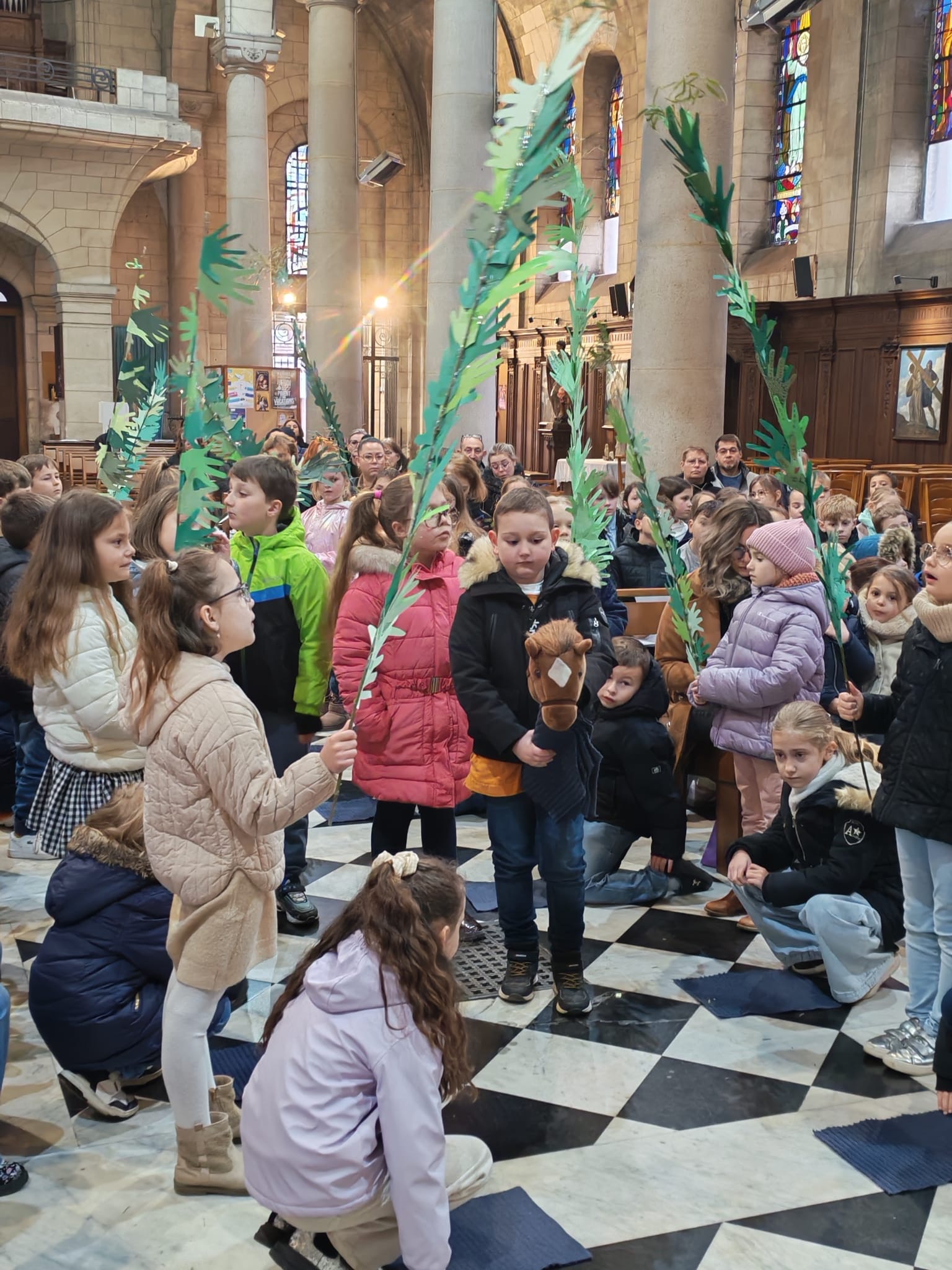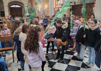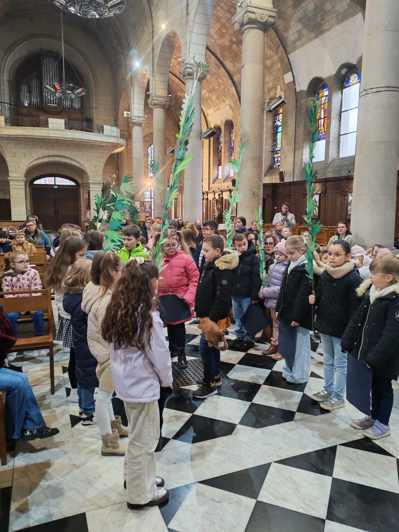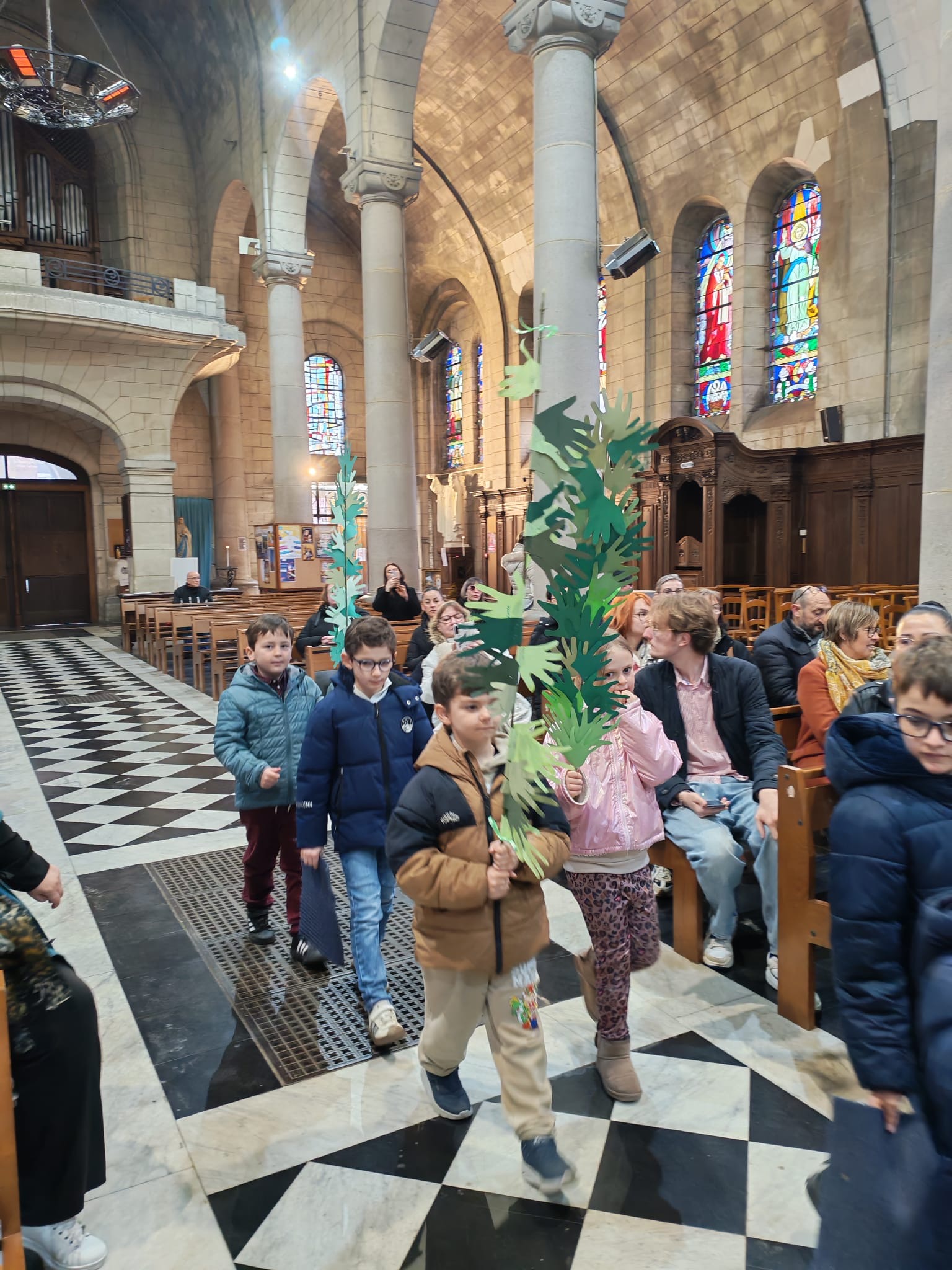 Pour préparer cet événement, les élèves ont participé à différentes activités riches de sens. Ainsi, chacun a confectionné de jolis rameaux décorés d’empreintes de mains, symbolisant l’entrée de Jésus à Jérusalem et l’accueil chaleureux qui lui fut réservé. Ces créations colorées ont apporté une touche vivante et personnelle à la célébration.