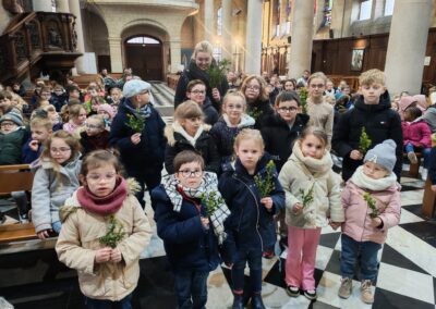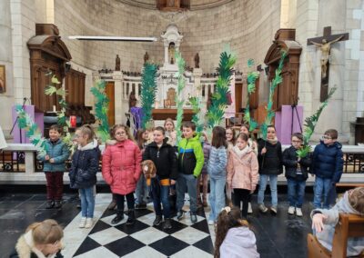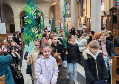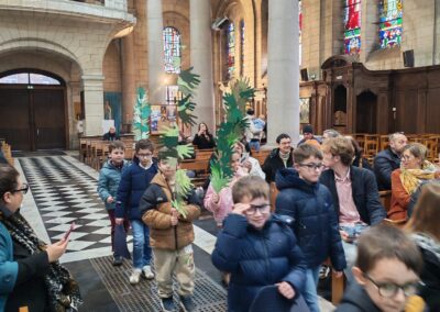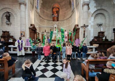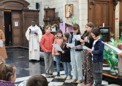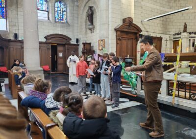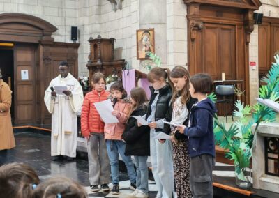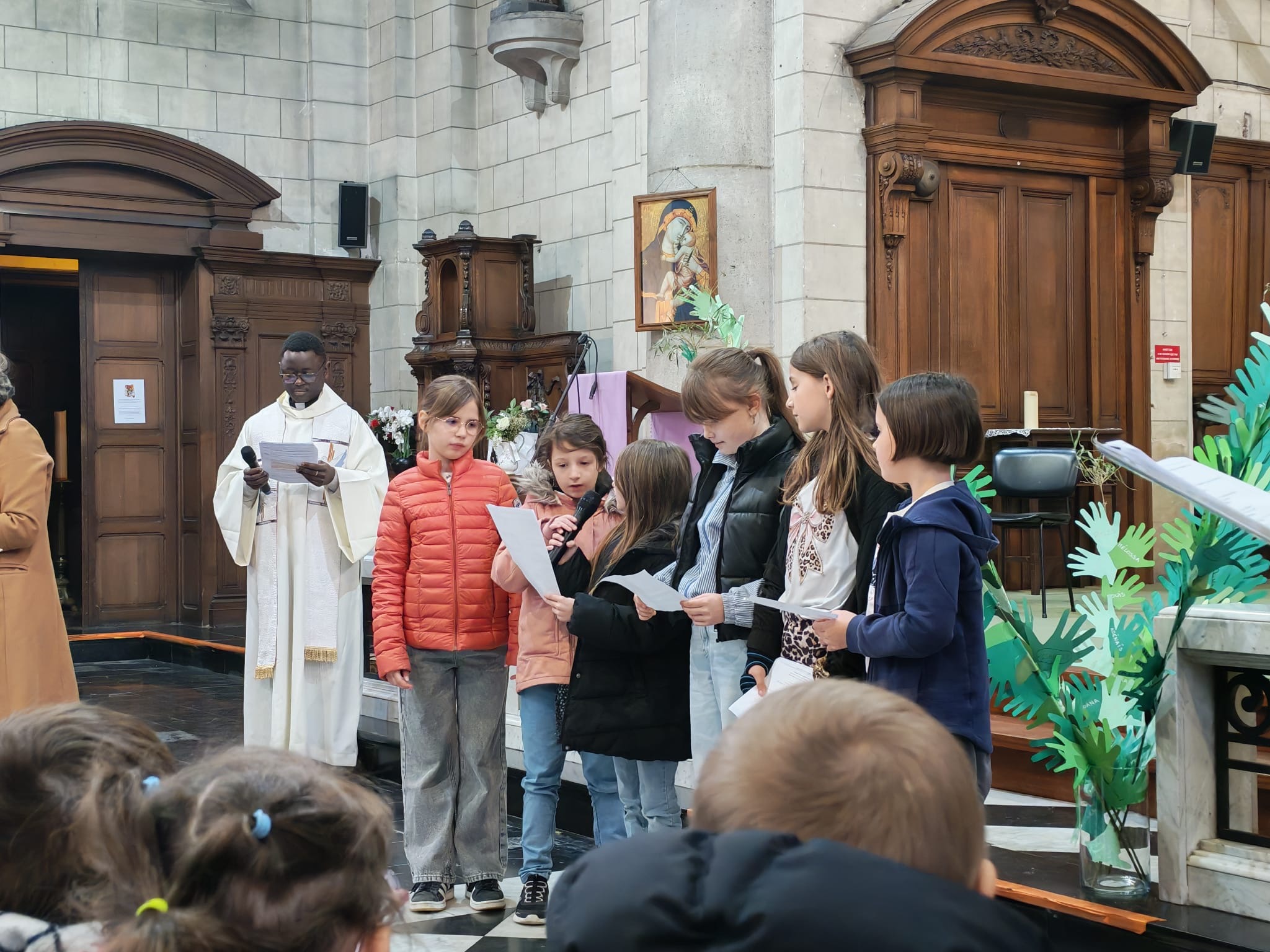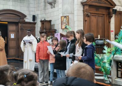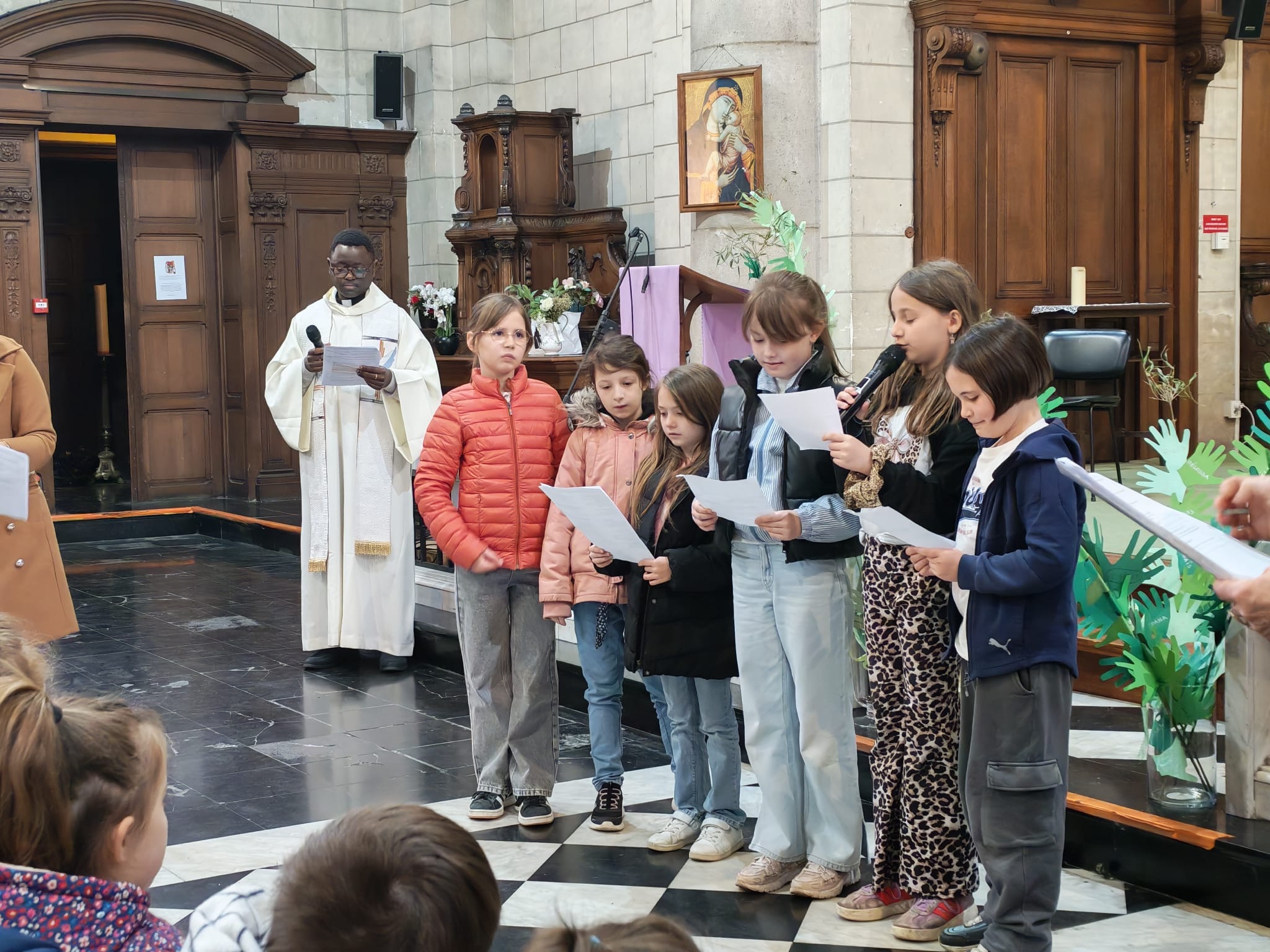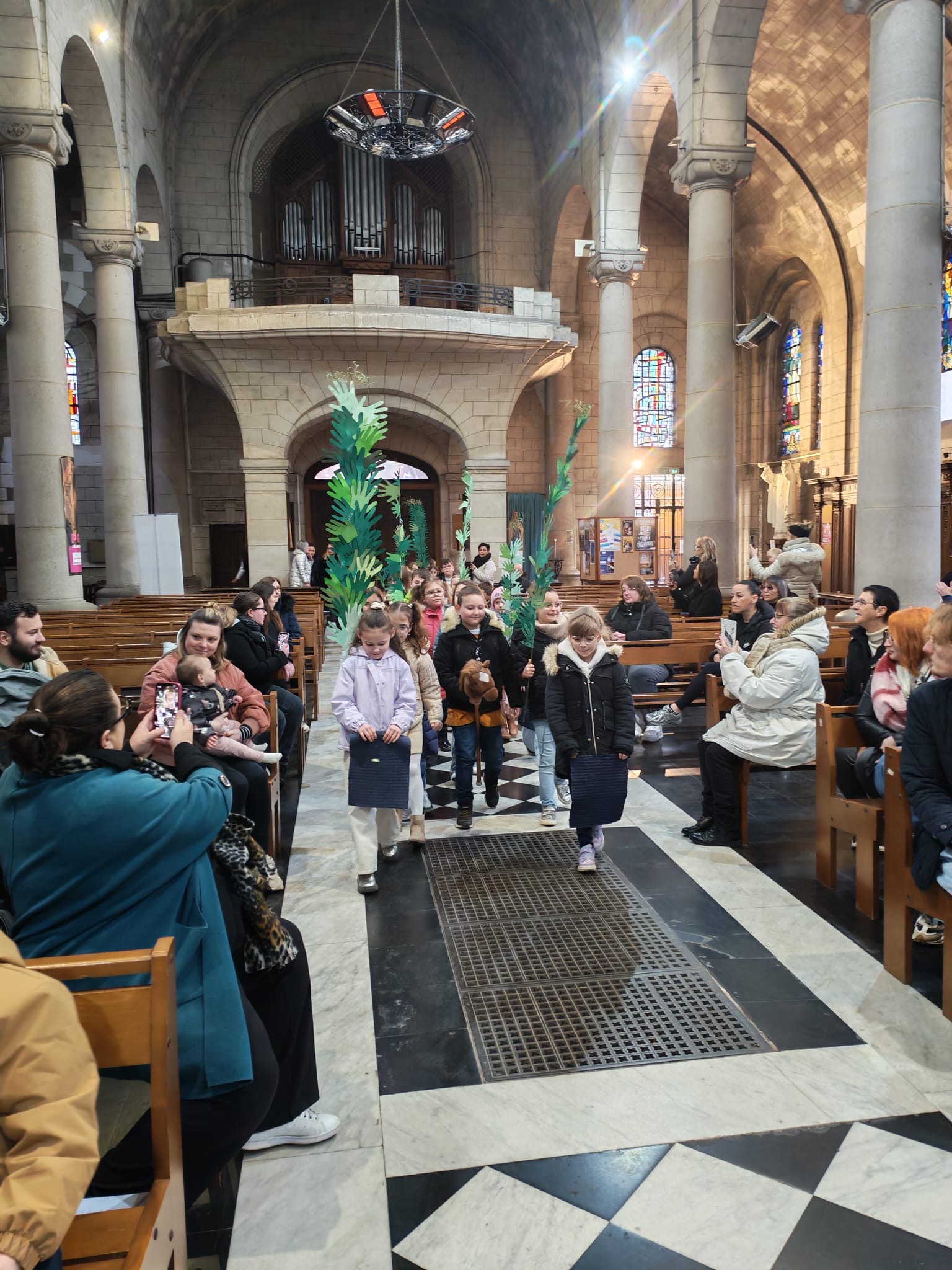 Pour préparer cet événement, les élèves ont participé à différentes activités riches de sens. Ainsi, chacun a confectionné de jolis rameaux décorés d’empreintes de mains, symbolisant l’entrée de Jésus à Jérusalem et l’accueil chaleureux qui lui fut réservé. Ces créations colorées ont apporté une touche vivante et personnelle à la célébration.