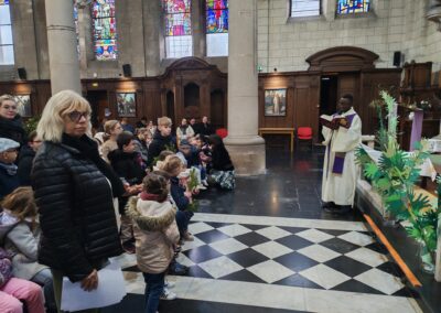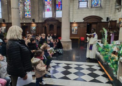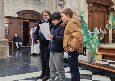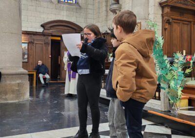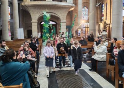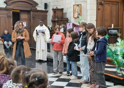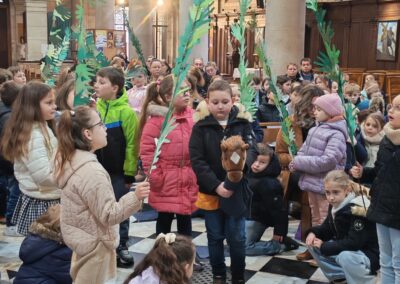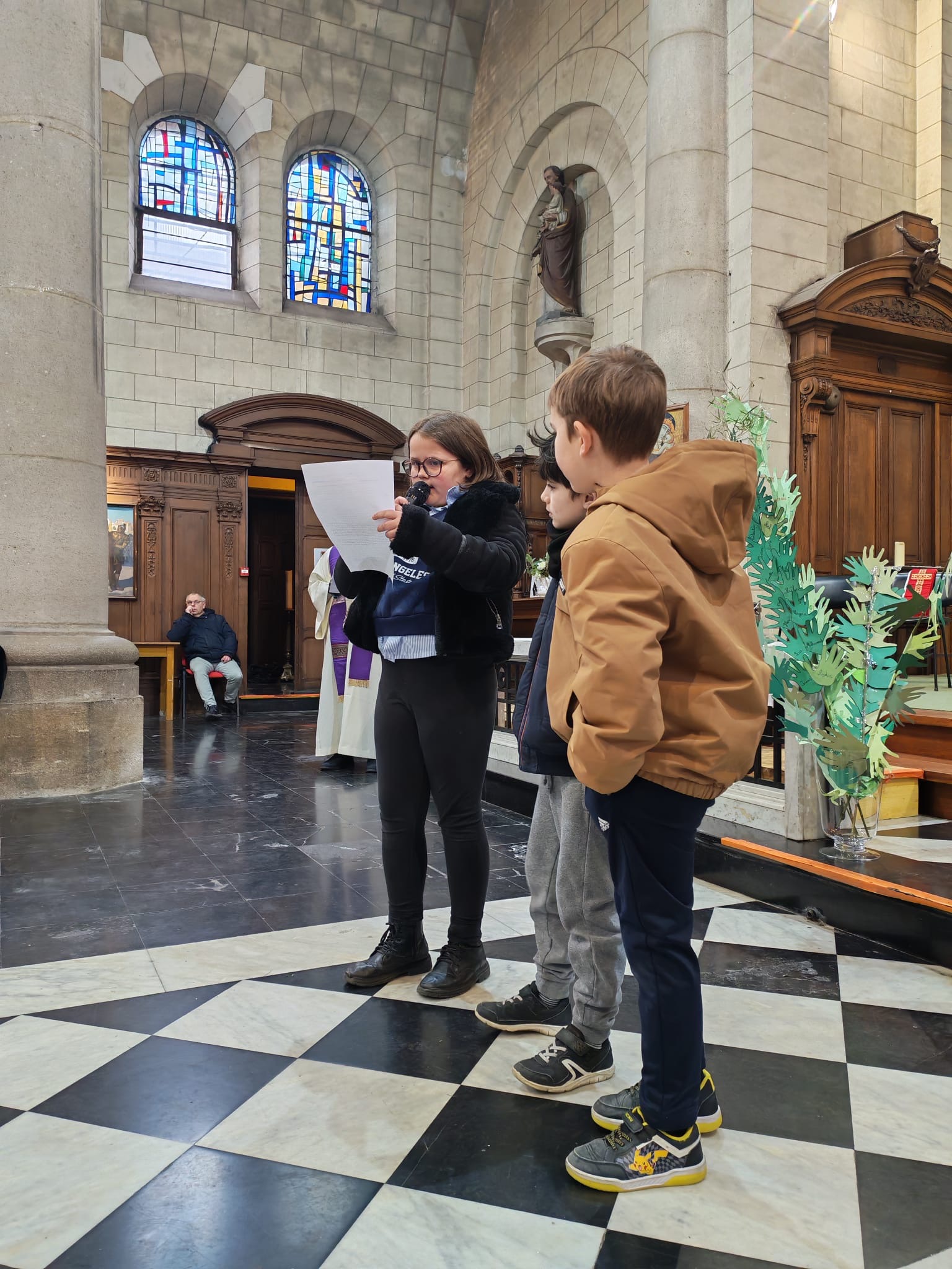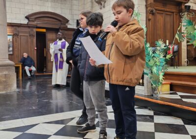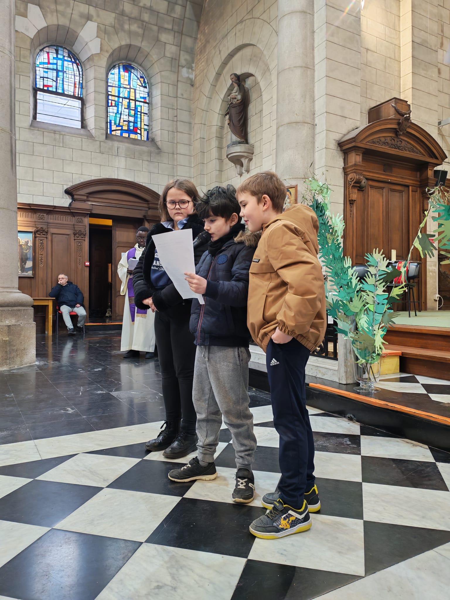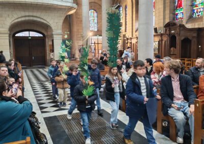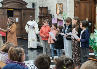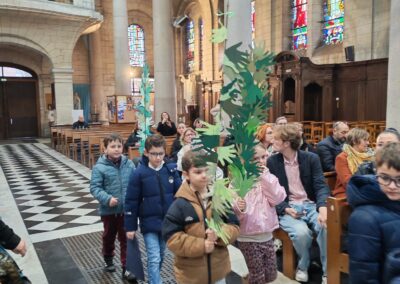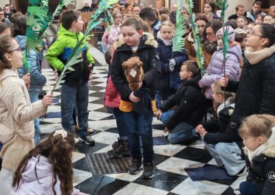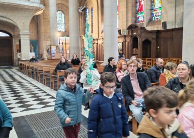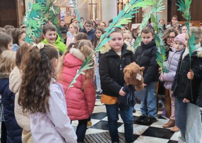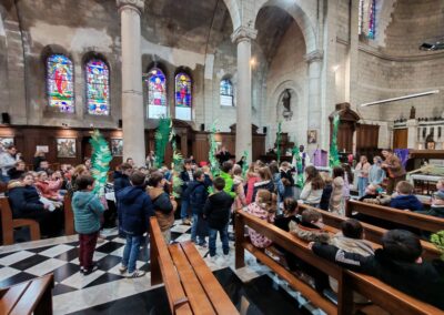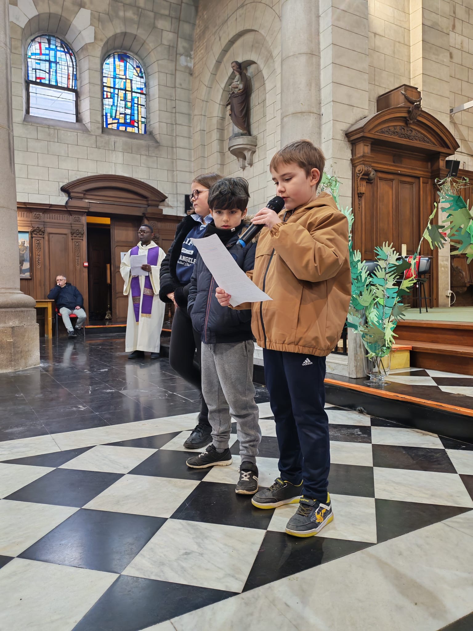Pour préparer cet événement, les élèves ont participé à différentes activités riches de sens. Ainsi, chacun a confectionné de jolis rameaux décorés d’empreintes de mains, symbolisant l’entrée de Jésus à Jérusalem et l’accueil chaleureux qui lui fut réservé. Ces créations colorées ont apporté une touche vivante et personnelle à la célébration.